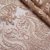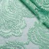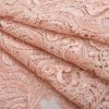 Материал тонкий, прозрачный, с низким уровнем эластичности основы по ширине. Вышивка на ткани выполнена из нити в тон основы, с сатиновым блеском. Несминаемый, приятный тактильно на ощупь, мягкий материал, в изделии достаточно увесистый. Ведет себя пластично, благодаря чему легко выкладывается по любой форме. Используется как для пошива одежды на подкладке, так и для отделки или декора отдельных деталей, отлично делиться на фрагменты. Используется для пошива блуз, топов, платья, юбок, вечерних и свадебных нарядов. Материал имеет ажурный фестон с двух сторон по кромке.