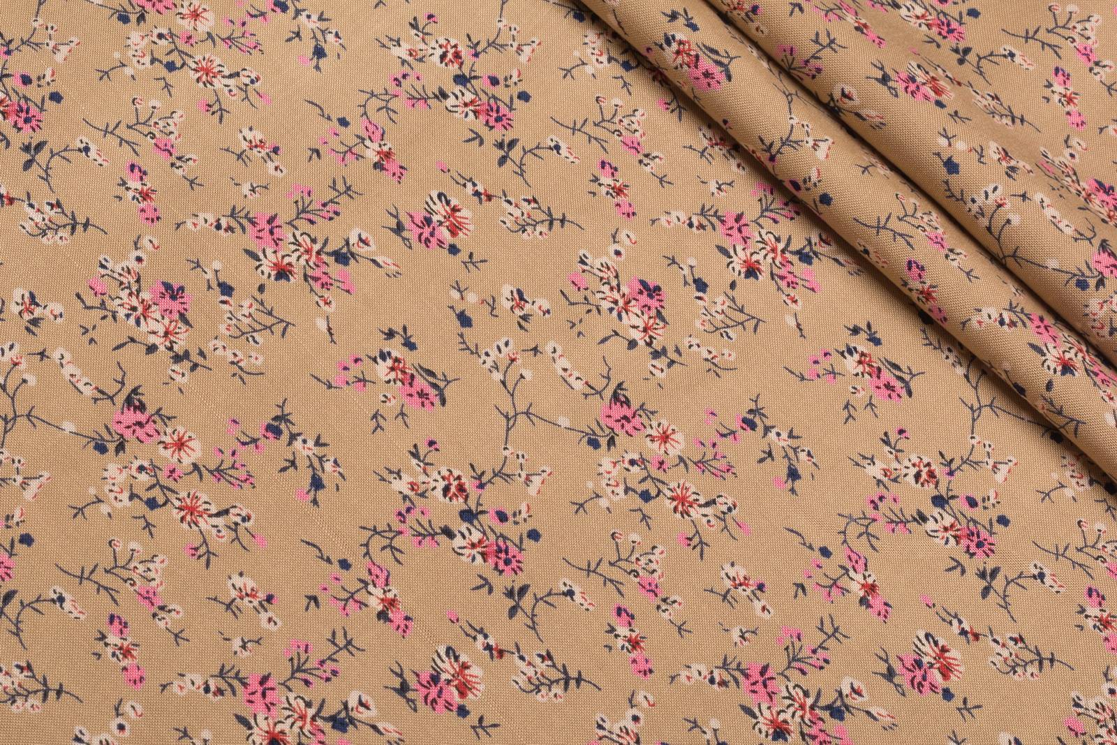 Матовый, непрозрачный материал средней плотности, с набивным рисунком и выразительной фактурой. За счет фиксированной структуры и удачно скомбинированного состава, материал слабосминаемый, практичный, простой в уходе и носке, устойчив к механической деформации и гигроскопичный. Поверхность шлифованная, тактильно мягкая и приятная. Драпируется мягко, образуя легкие, пластичные складки. При пошиве как плечевых, так и поясных изделий, использование подкладки не обязательно. Используется для пошива легких, струящихся костюмов, платьев, юбок, сарафанов, блуз, аксессуаров.